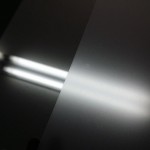 下の写真は室内の窓ガラス右側1枚に両面ミラーフィルムを貼った写真になります。