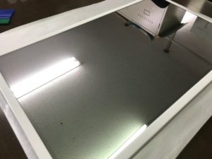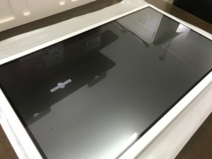 26インチのタッチパネルモニターをミラーディスプレイにしたいとのことで弊社ハーフミラーフィルム施工をご採用いただきました。