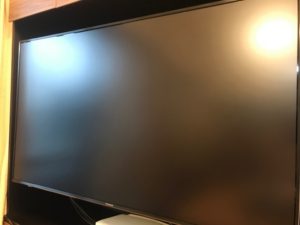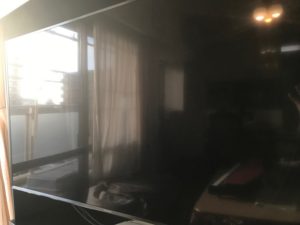 55インチモニターに「エアゼロ超反射防止」を貼る前、貼った後の比較写真のご紹介です。