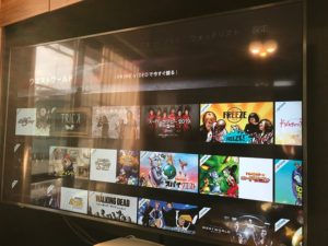ご覧のようにデジタルサイネージの映り込みで画面が見にくい状態を、かなり改善することができます。